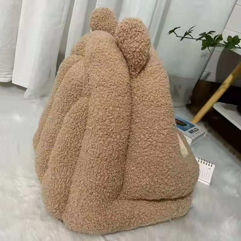 • 🐻 Adorable Bear Design: Light brown plush exterior with 3D ears and a cozy cave-like interior.